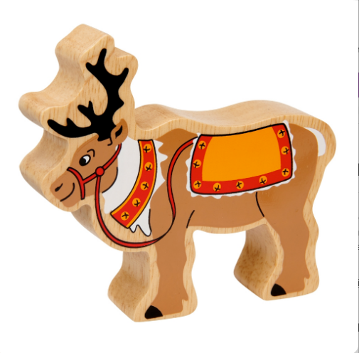 Wooden Christmas Reindeer Figure with Reins
